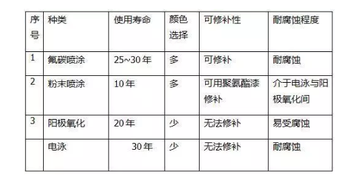 現在市場上出現的彩色鋁型材,用於鋁門窗,就是用普通鋁型(xíng)材粉沫噴塗而成,使鋁門窗(chuāng)顏色品種增(zēng)加,同時也增強抗腐蝕能力。另一(yī)種靜(jìng)電噴塗為液(yè)態噴(pēn)塗,又稱氟碳噴塗,香港稱為鋦油,屬於高檔次噴塗,價格較高,在國外早已應用。在國內大麵積用於鋁板幕牆,由於其優異(yì)的特點,越來越受到建築業及用戶的重(chóng)視和(hé)青睞。氟碳(tàn)噴塗具有優異的抗退色性、抗起霜性、抗大氣汙染(酸雨等)的腐蝕性,抗紫外線能力強,抗裂性強(qiáng)以及(jí)能夠承受惡劣天氣環(huán)境,是一(yī)般塗料所不及(jí)的。